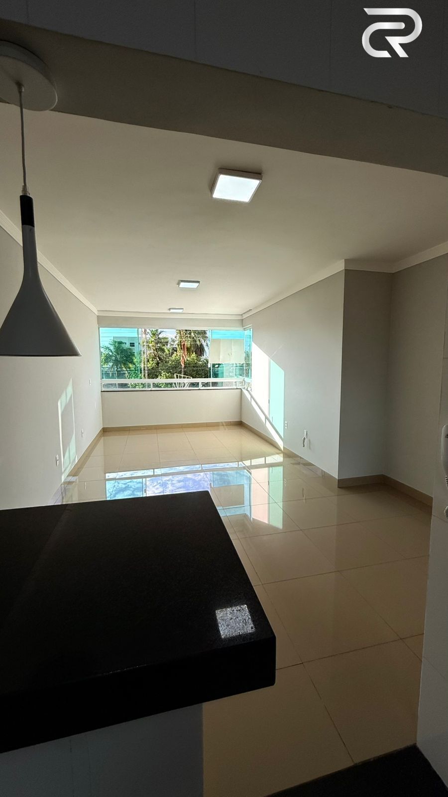 Sala ampla conjugada com cozinha americana toda montada planejados.