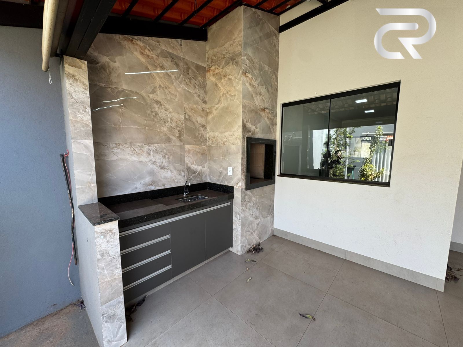 - Varanda Gourmet com churrasqueira e armário sob a pia