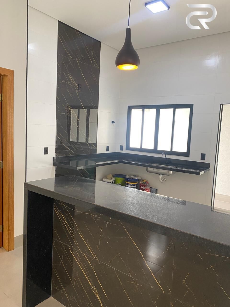 3 quartos 1 suíte com closet sala ampla com pé direito duplo 3.5 metros e cozinha pé direito duplo tetos no gesso rebaixada também 1 escritório garagem coberta pra 2 carros.