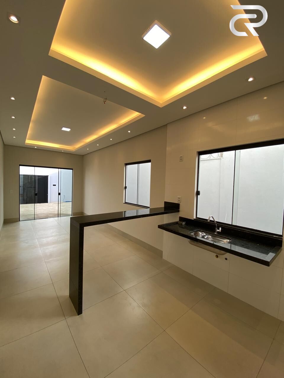 2/4; Suíte; Banheiro social; Sala; Cozinha americana com bancada; Lavanderia coberta; Dispensa; 03 vagas garagens; 80 m² a.c.; 250 m² a.t.; R$: 480.000,00.