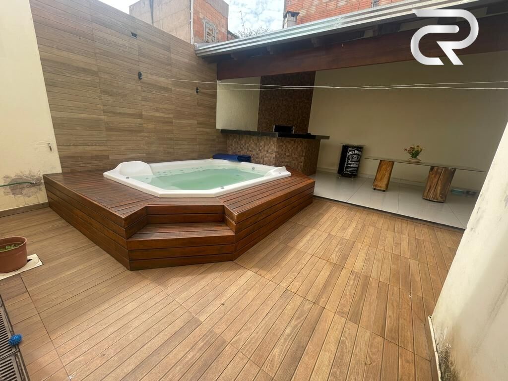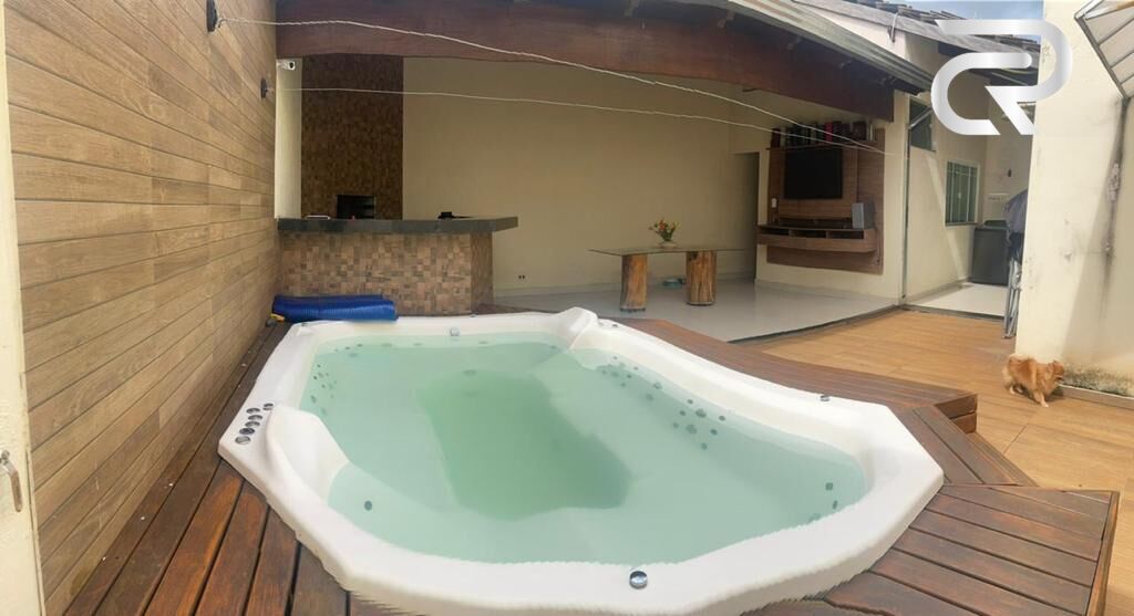 ¾ sendo uma suíte, sala ampla com boa iluminação natural em dois ambientes, (sala de estar, sala de tv), cozinha ampla com armários, e fogão de ilha, banheiro social completo, no fundo varanda com churrasqueira, bar com adega e banheira de hidromassagem; garagem coberta para dois carros, Aceita financiamento, 185 m² área construída, 250 m² área total, R$ 580.000,00.